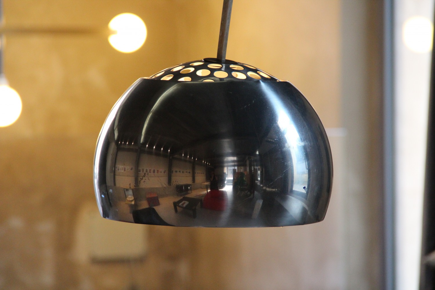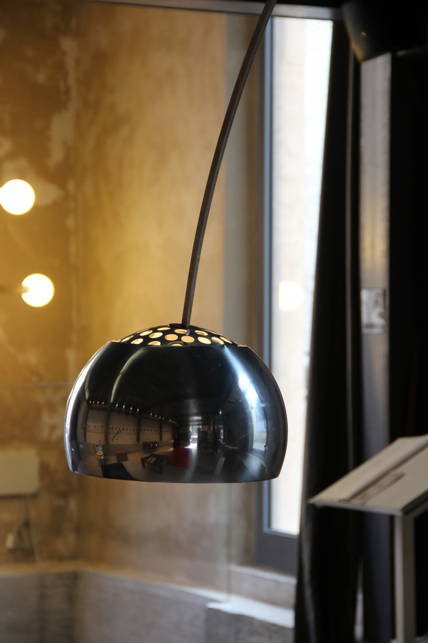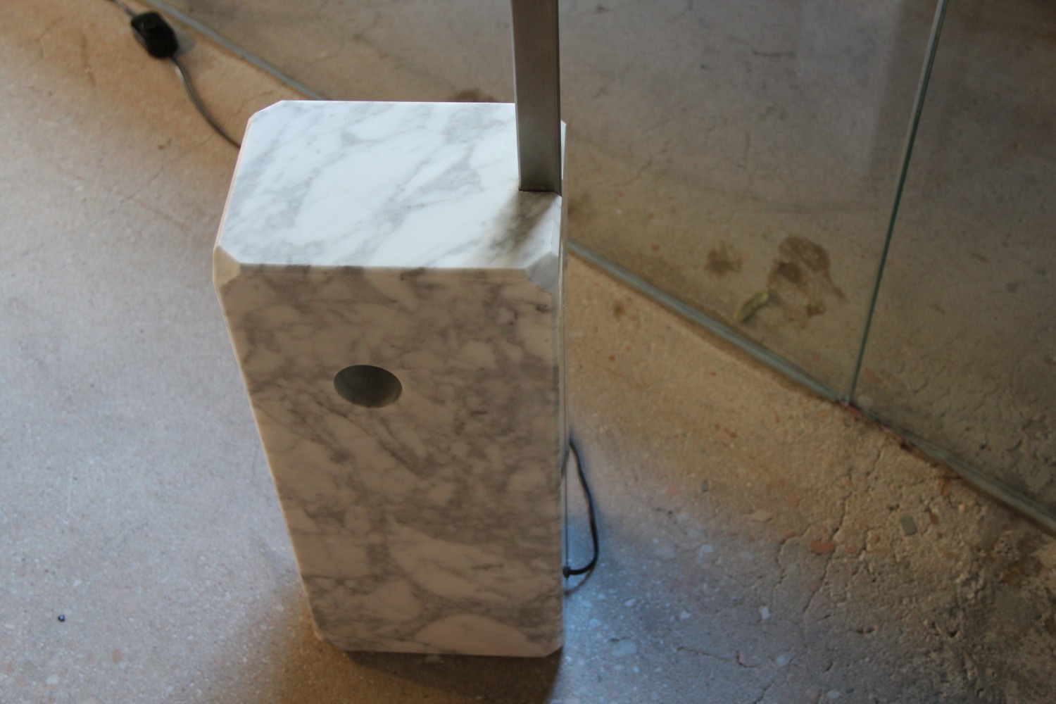 Base made of white marble, shaft made of stainless-steel rod, reflector made of polished aluminum